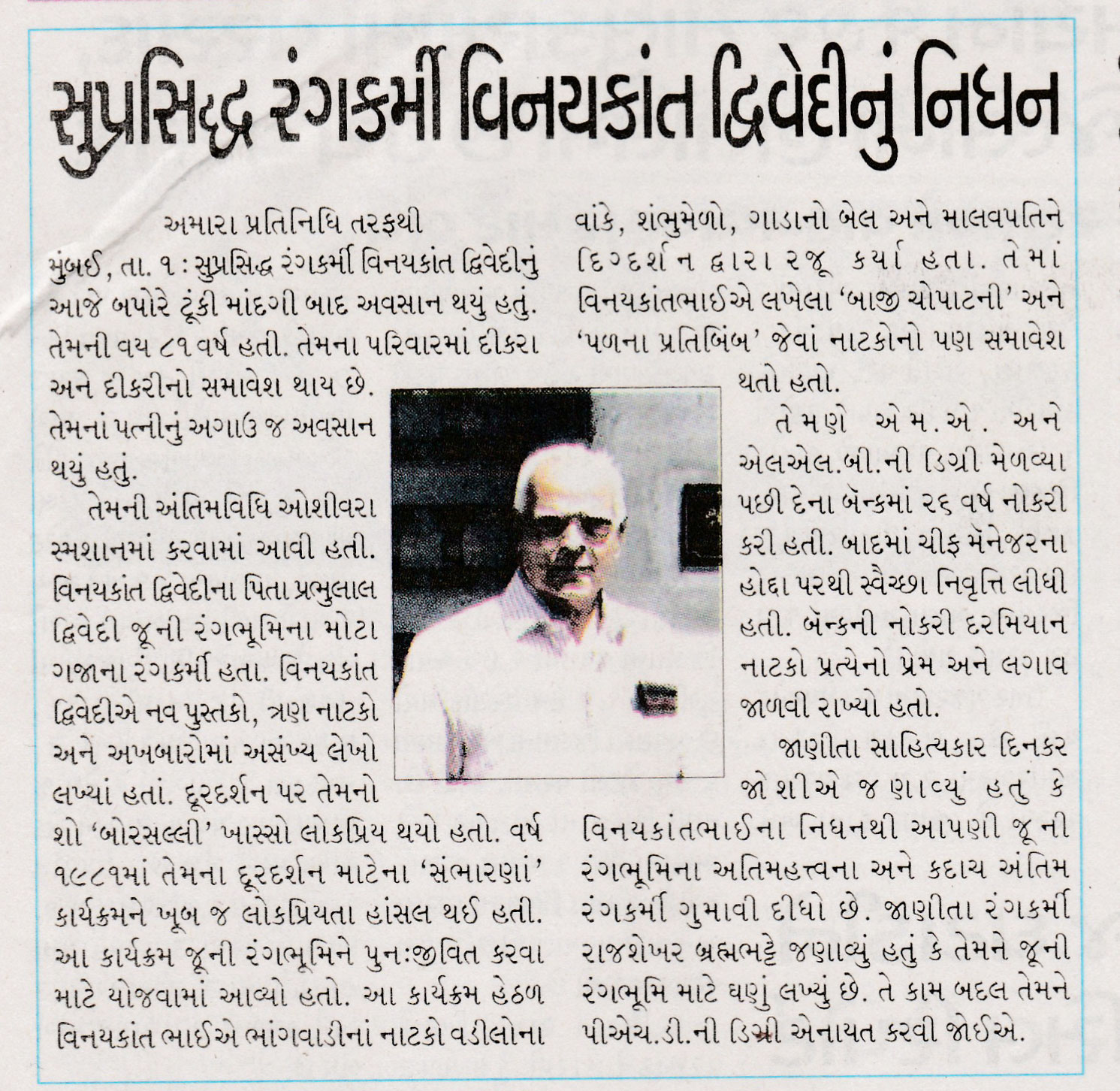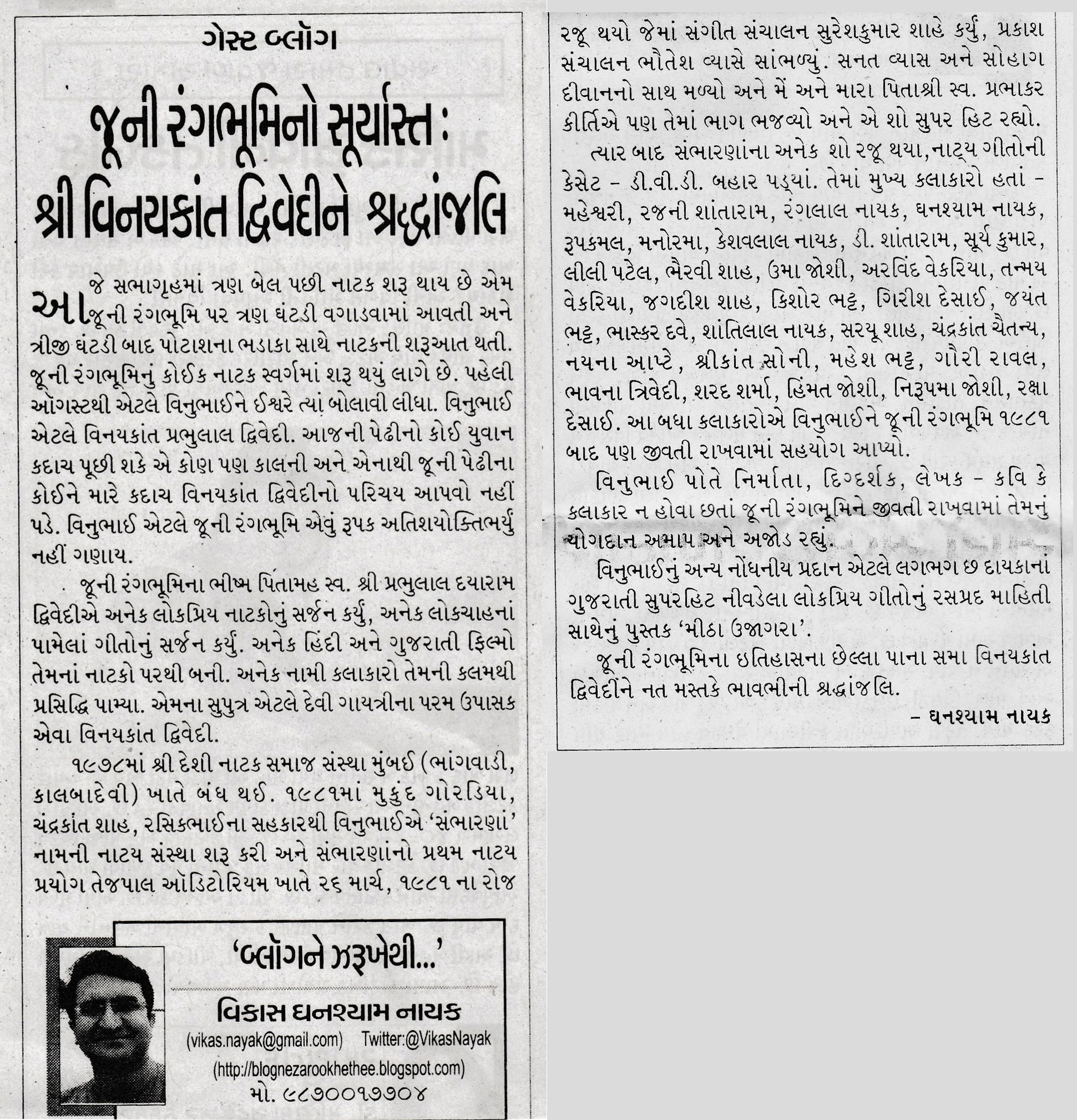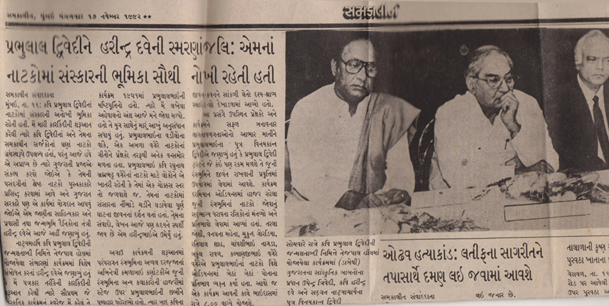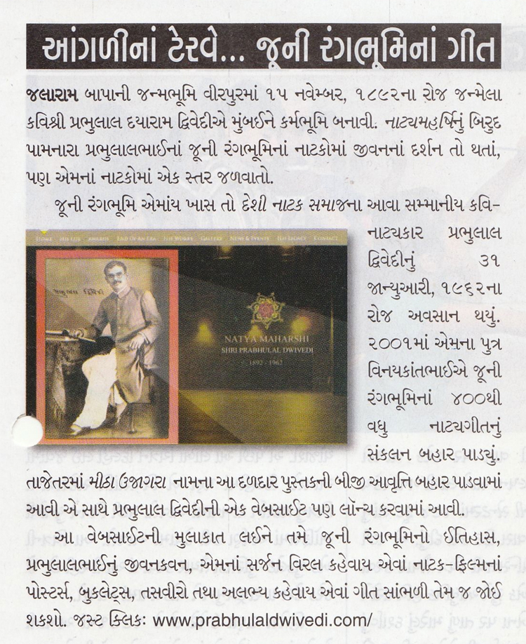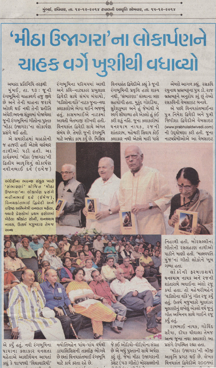 6th Decemeber, 2014: Launch of the new edition of Meetha Ujaagra – a book containing the famous works of Shri Prabhulal Dwivedi, put together by Shri Vinaykant Dwivedi.