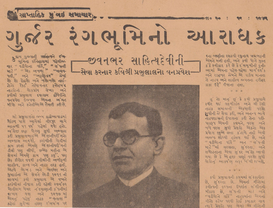 Prabhulal Dwivedi’s poem in 12th Standard curriculum